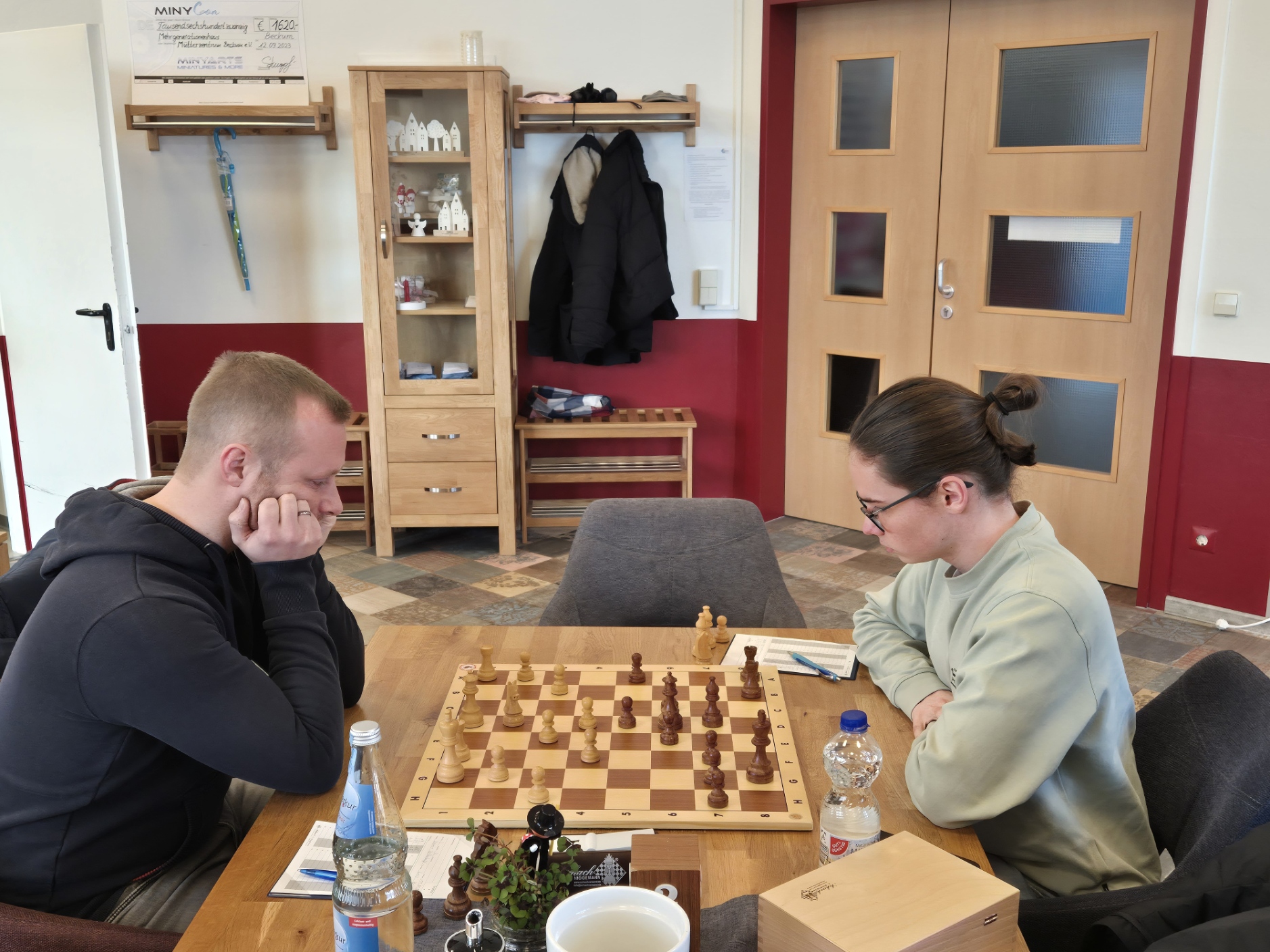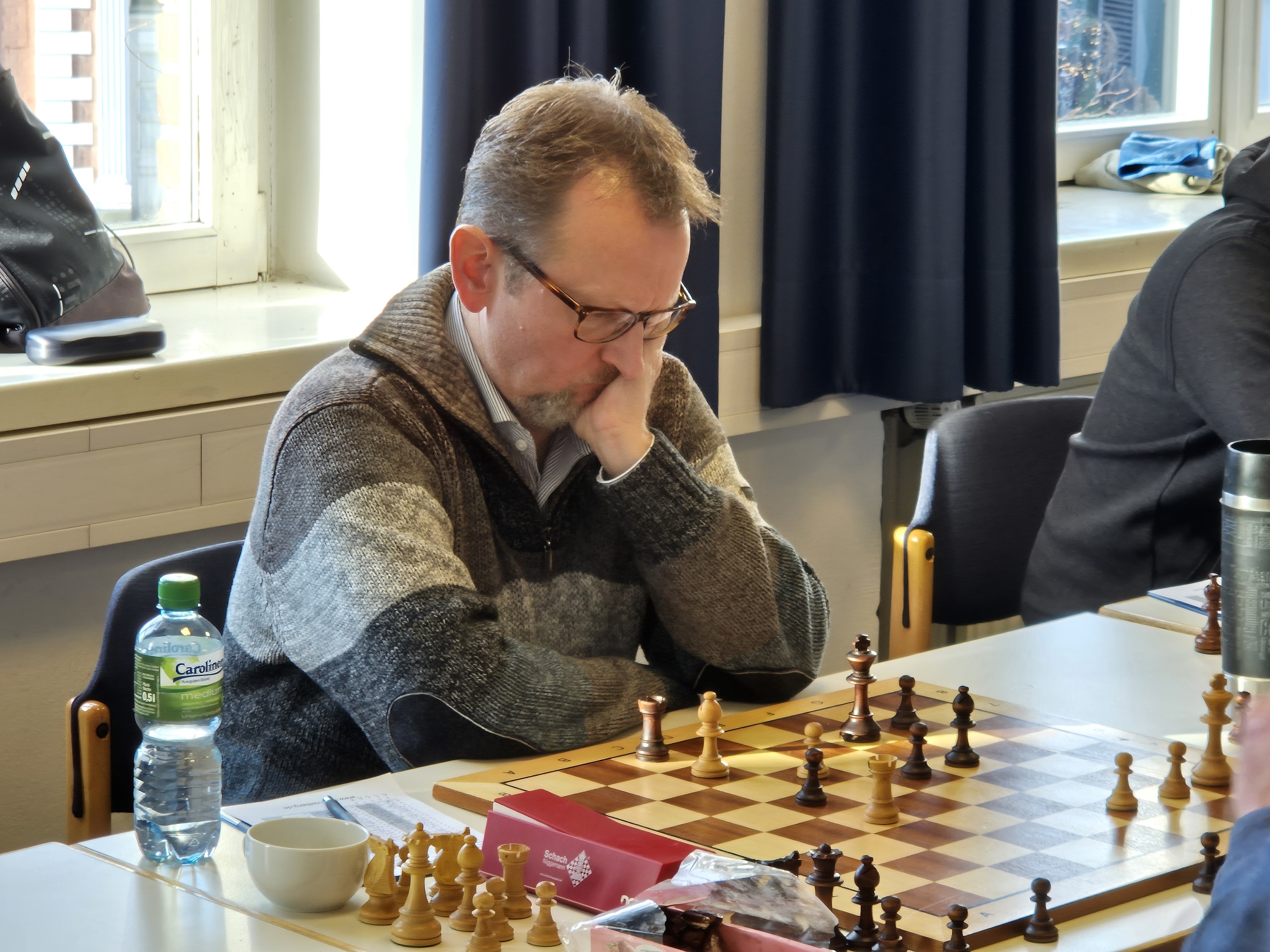 | Die erste Mannschaft der SG Turm Rietberg ist mit einer 3:5?Niederlage ins neue Jahr gestartet. Gegen den Tabellennachbarn SV Königsspringer Lemgo entwickelte sich ein ausgeglichener Mannschaftskampf, an dessen Ende eine bittere, aber nicht unverdiente Niederlage stand. Das erste Resultat wurde am 6. Brett notiert. Herbert Langhorst konnte seinen Anzugsvorteil nicht verteidigen und war froh, dass sein Gegenüber alle Vereinfachungen zuließ. Als dieser auch in ein Endspiel Läufer (für Herbert) gegen Springer abwickelte, witterte der Rietberger wieder Morgenluft. Nach der Schaffung eines entfernten Freibauern sah sich der Lemgoer genötigt, seinen Springer gegen diesen Bauern zu opfern. Die Stellung war jedoch nicht leicht zu gewinnen, da auf dem anderen Flügel ein Randbauer die falsche Farbe gehabt hätte. Da Herbert die teilweise studienartigen Abwicklungen nicht fand, endete die Partie remis. - 0,5:0,5 An Brett 1 strebte Cedric Kollenberg mit den schwarzen Steinen eine unausgeglichene Stellung an, in der der Lemgoer am Damenflügel sein Spiel suchte, während Cedric einen Königsangriff startete. In dynamischem Gleichgewicht bot sein Gegner Remis an, was Cedric nach längerer Bedenkzeit annahm. Im Nachhinein hätte hier jedoch weitergespielt werden sollen. - 1:1 Anschließend wurde auch Martin Funkes Partie (Brett 2) remis. In den üblichen Strukturen gelang es seinem Gegner, viele Figuren zu tauschen. Da Martin in der dann sehr ruhigen und ausgeglichenen Stellung keinen vorteilhaften Plan sah, nahm er das Remis-Angebot des Lemgoers an. - 1,5:1,5 An Brett 5 hatte sich David Austermeier mit einer geschickten Taktik aus der etwas gedrückten Stellung befreit. Nach beidseitigen Remis-Angeboten, die jeweils abgelehnt wurden, war David in den folgenden Zügen leider nicht präzise genug und musste einen Bauern geben, um ein Eindringen von Turm und Springer über f6 und die d-Linie zu verhindern. Schließlich nahm er das nächste Remis-Angebot in leicht schlechterer Stellung an. - 2:2 Elias Vögeler half heute am 8. Brett aus. Seinen Vorstoß am Damenflügel beantwortete der Gegner mit einem ![]() Ludger Funke (Brett 7) gelang heute der einzige Sieg und bestätigte damit seine gute Form vom Neujahrsblitz. Das zweite Brett der zweiten Mannschaft war jedoch zunächst in der Defensive und auch materiell im Nachteil. Nachdem allerdings der gefährliche Freibauer entfernt worden war, konnte Ludger seine Figuren aktiv vor dem gegnerischen König platzieren. Die vielversprechende Stellung wurde schließlich durch eine Familiengabel verwertet. - 3:3 ![]() Leider sollte es bei Oliver Flöttmann (Brett 4) ebenso bitter weitergehen. Er kam mit Mehrbauern, aber gedrückter Stellung aus der Eröffnung. Nach Rückgabe des Bauern konnte Oliver seine Stellung konsolidieren und eine aktive Position erreichen. Seinem Gegner gelang es ![]() In der Regionalliga belegt die Mannschaft weiterhin den 4. Tabellenplatz. Am nächsten Spieltag in drei Wochen (01.02.2026 ) geht es nach Gütersloh. |