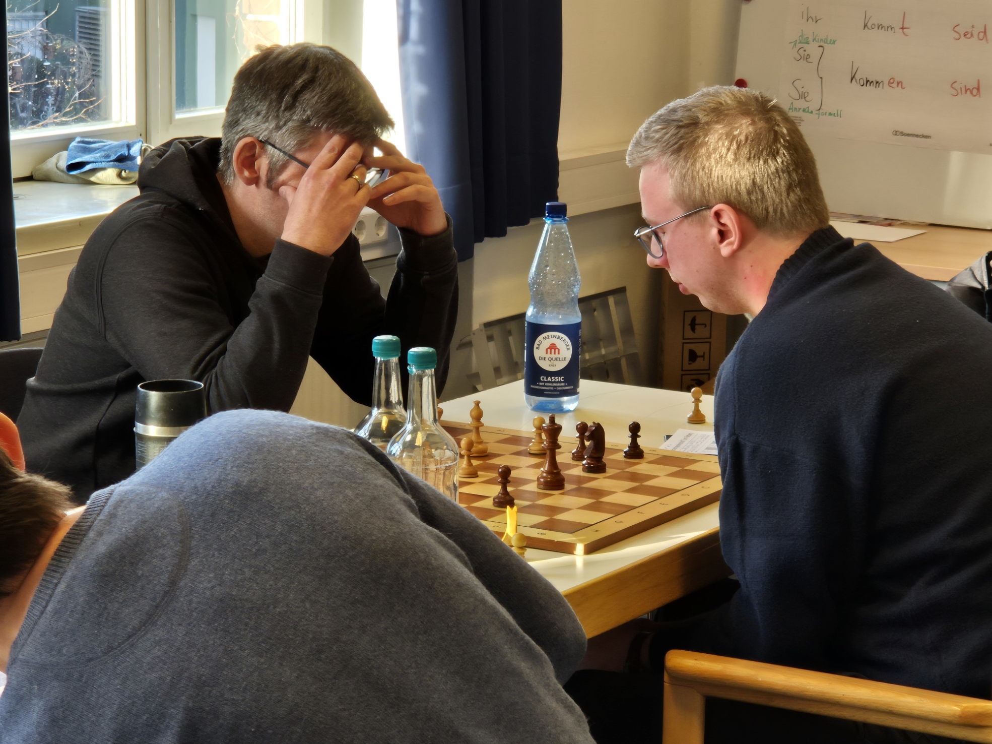 | Kaum waren die Uhren angestellt, meldeten die Spieler an Brett 4 bereits ein Remis. Für den Rietberger Michael Schalk an sich ein gutes Resultat gegen einen deutlich DWZ-stärkeren Gegner. Danach lief es an den Brettern 7 und 8 ungünstig. Die beiden Nachrücker aus der 3. Mannschaft, Naser Aboalseel und Klaus Hermann, waren den taktischen Verwicklungen in ihren Partien nicht gewachsen und mussten schon frühzeitig aufgeben. Nach einem Remis an Brett 3, wo Elias Vögeler mit den schwarzen Steinen im Mittelspiel den Anzugsvorteil seines Gegenübers wettgemacht hatte, ergab sich der Zwischenstand von 1 : 3. In diesem Moment konnte man kaum ahnen, dass es noch einmal spannend werden könnte. Erst einmal brachte ein weiteres Unentschieden durch Michael Hutfilker keine Resultatsverbesserung. In den restlichen drei Partien lag Yuyang Chen dank eines Mehrbauern in Führung, bei Ferdi Schumacher war eher wenig los und Ludger Funke geriet am Spitzenbrett in einen gefährlich aussehenden gegnerischen Angriff. Dann allerdings gelang es Ludger, der sich bis dahin präzise verteidigt hatte, das Blatt zu wenden und eine Gegenattacke zu starten, bei der er eine Figur und damit die Partie gewann. Yuyang sah nach einer verwickelten und von ihm gut vorgetragenen Druckspiel plötzlich "Gespenster". Er wähnte sich in einer Mattfalle und gab auf. Anschließend mussten er und seine Mitspieler fetstellen, dass es eine gar nicht so schwer zu findende Verteidigung gab, die zum Remis geführt hätte. Schade um den halben Punkt. Denn fast zeitgleich hatte Ferdi noch einmal Spannung in seine Partie gebracht. Nach einem Bauernvorstoß erspähte er für die Dame und den Turm einen Weg zum gegnerischen König. Für das Mannschaftsergenis kam dieser Sieg allerdings zu spät. Die Entscheidung war bereits Sekunden zuvor gefallen. Schade. Endstand : 3,5 zu 4,5 Fazit von Markus Huster, Nr. 1 von Wiedenbrück: „Ich kann mich nicht erinnern, dass wir die ersten beiden Bretter verloren und den Mannschaftskampf trotzdem gewonnen haben.“ |