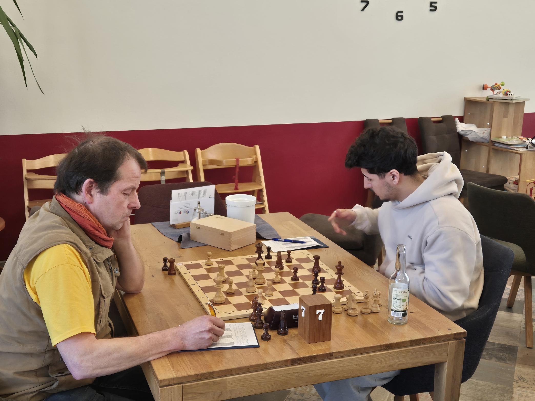 Bei strahlendem Sonnenschein reiste die dritte Mannschaft der SG Turm Rietberg zum dritten Spieltag der Bezirksklasse Bielefeld nach Beckum. Dort wartete die zweite Mannschaft der SG Beckum-Wadersloh, die als klarer Favorit ins Rennen ging. Doch Rietberg zeigte eine geschlossene Mannschaftsleistung und hielt den Gastgeber über weite Strecken erstaunlich gut in Schach.![]() Den Auftakt machte Eberhard Austermann an Brett 5, der nach gutem Start durch eine Unachtsamkeit die Partie aus der Hand gab. Kurz darauf musste auch Leo Baumann an Brett 8 seinem Gegner gratulieren. Ein frühes 0:2 aus Rietberger Sicht – doch die Mannschaft ließ sich davon nicht beeindrucken. ![]() Auch Klaus Herrmann zeigte an Brett 3 eine souveräne Leistung und erreichte ein klares Remis. Luis Kriener an Brett 2 folgte mit einem weiteren halben Punkt, sodass die Begegnung weiter völlig offen blieb. ![]() Am Ende stand ein knappes 4,5 : 3,5 für die Gastgeber – ein Ergebnis, das zeigt, wie stark Rietberg gegen den Favoriten mithielt und wie eng der Mannschaftskampf tatsächlich verlief. Der Blick richtet sich nun auf den kommenden Spieltag: Am 01. Februar empfängt die dritte Mannschaft zu Hause die zweite Vertretung des SK Halle. Mit der Leistung aus Beckum im Rücken darf man sich auf eine spannende Begegnung freuen. |